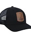 Genuine leather patch adds a premium, rugged touch to the classic black cap